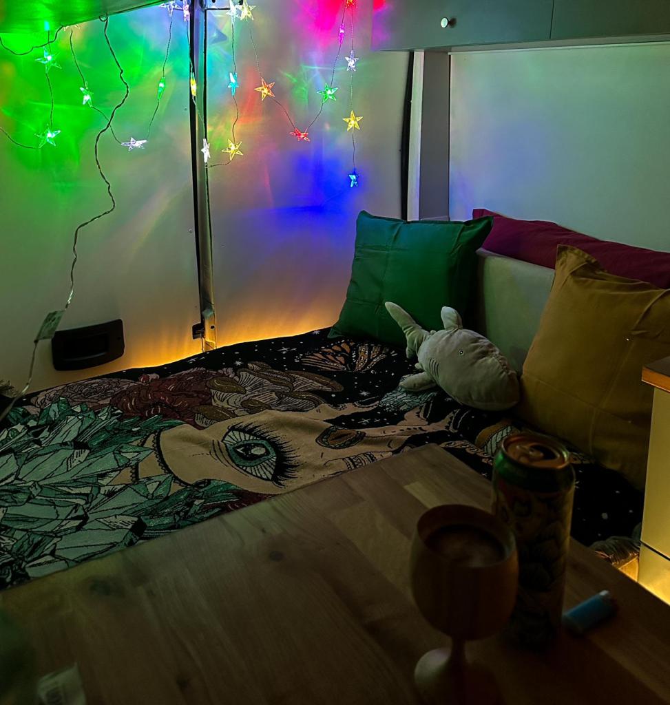 Ho una batteria immensa: senza collegarmi alla colonnina e senza Sole sono stata immobile a Capodanno per quattro giorni prima di rimanere senza energia: riscaldamento sempre acceso, induzione per mangiare, macchinetta del caffè, montalatte per cappuccino, cassa della musica, sono tutte cose che assorbono energia e che ho usato tutti i giorni. Non avrei potuto fare scelta migliore, volendo all’interno si cena in sei! E se ve lo state chiedendo, sì è già successo!