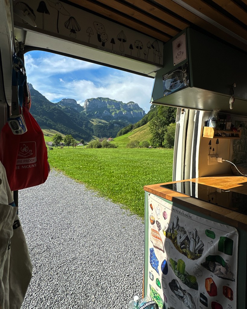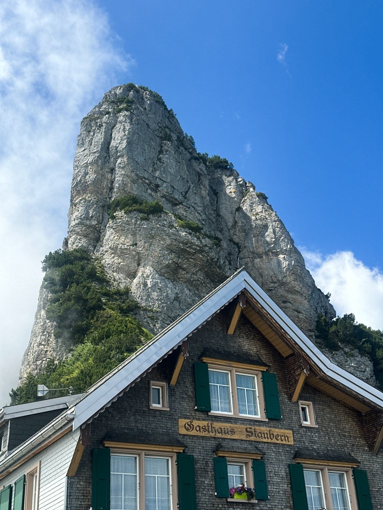 Pensavamo che la partenza della funivia fosse qui, in Appenzello, come avevamo letto su una traccia di Komoot; in realtà parte dal Canton San Gallo. Bisogna recarsi alla funivia Staubernbahn, dove noi non abbiamo trovato parcheggio, quindi abbiamo lasciato il van in paese.